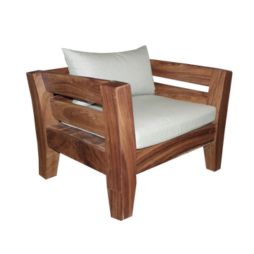 Sillón en madera de parota con cojines en sunbrella