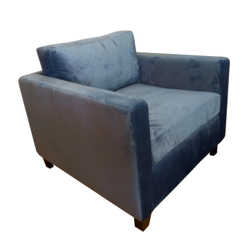 Tapizada en tela tipo suede azul, cojines reversibles